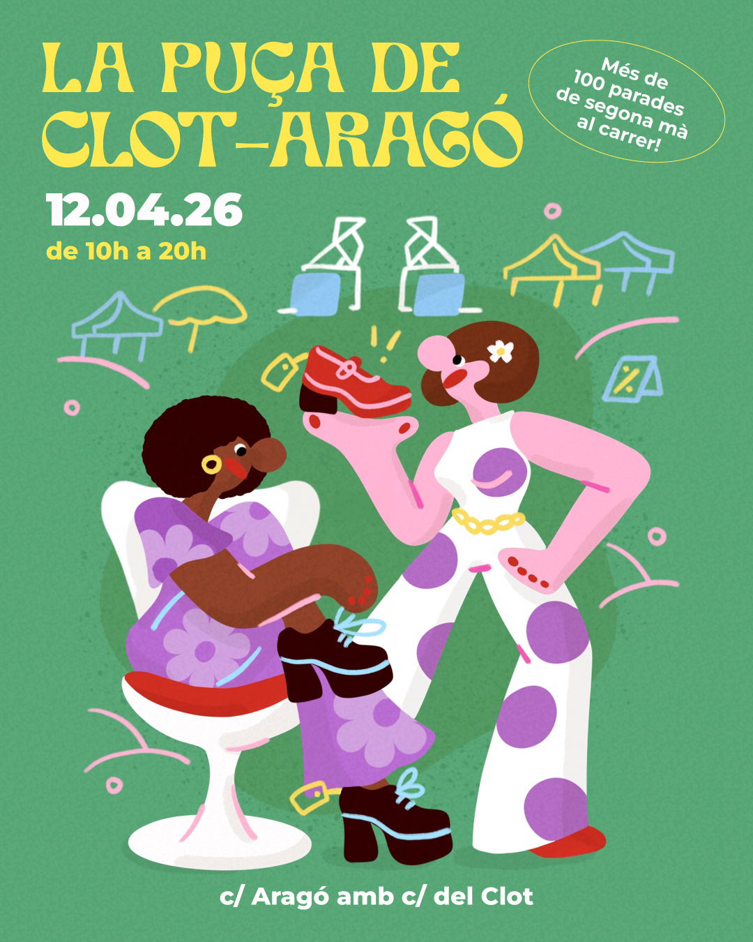 Se acabó vernos a todas vestidas igual. Encuentra el tesoro perdiéndote felizmente entre las más de 120 paradas de segunda mano en nuestro mercado sin tener que pagar entrada, ni hacer cola. Estaremos al sol, disfrutando del barri sin luces fluorescentes.